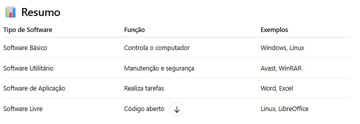 O software básico é responsável por controlar o funcionamento do computador e gerenciar os recursos do hardware.