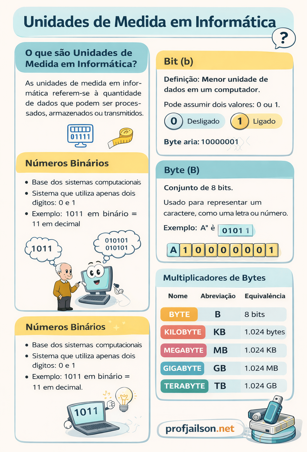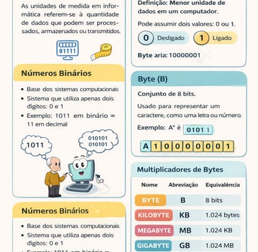 Essas medidas são fundamentais para entender a capacidade de memórias, discos rígidos, pendrives, arquivos e velocidade de transmissão de dados.
